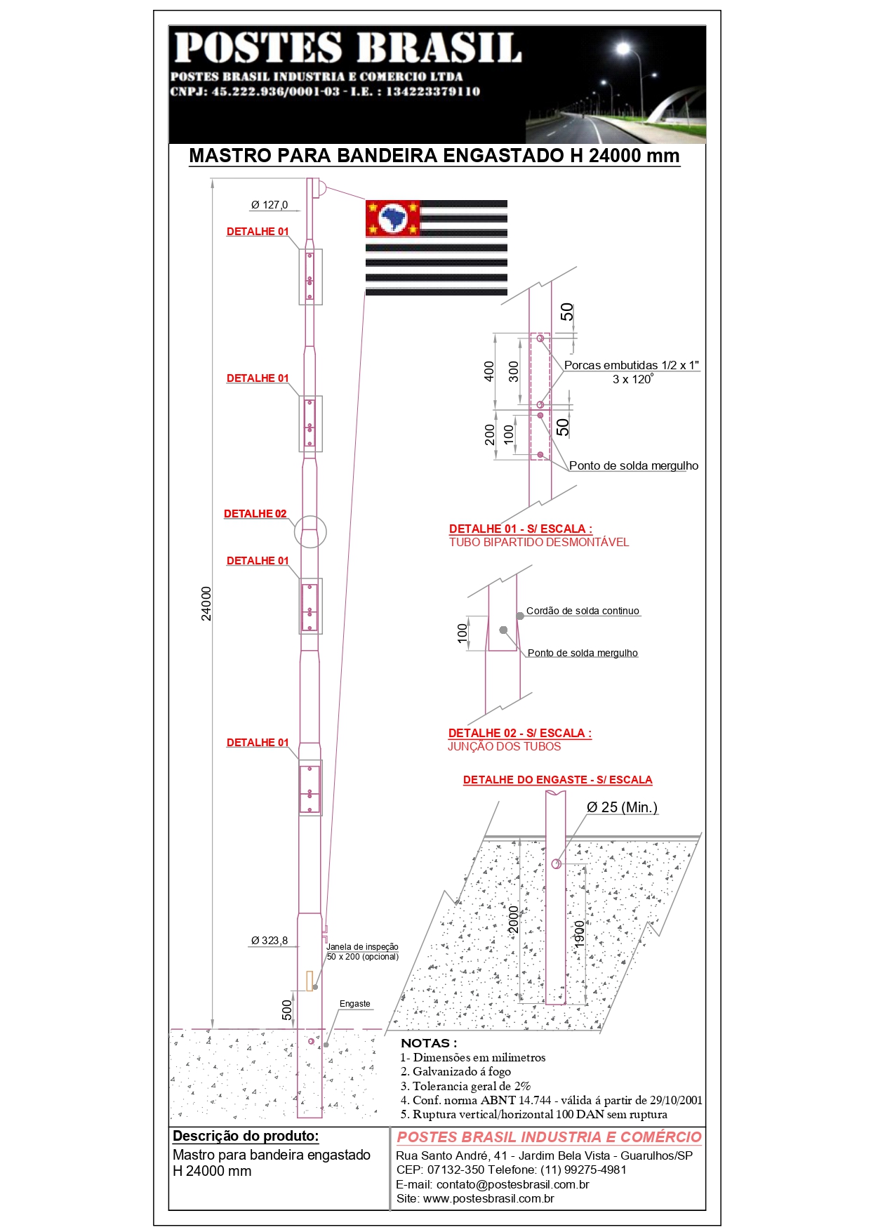 - Mastro Para Bandeira Engastado H 24000 mm
