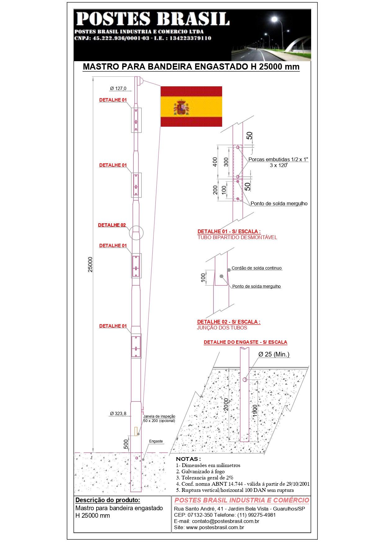 - Mastro Para Bandeira Engastado H 25000 mm