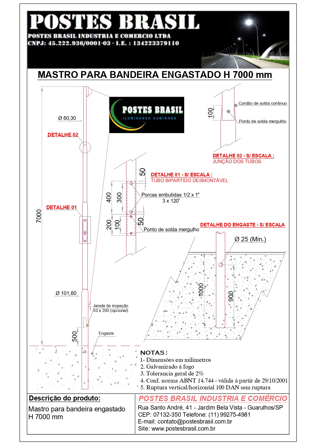- Mastro Para Bandeira Engastado H 7000 mm