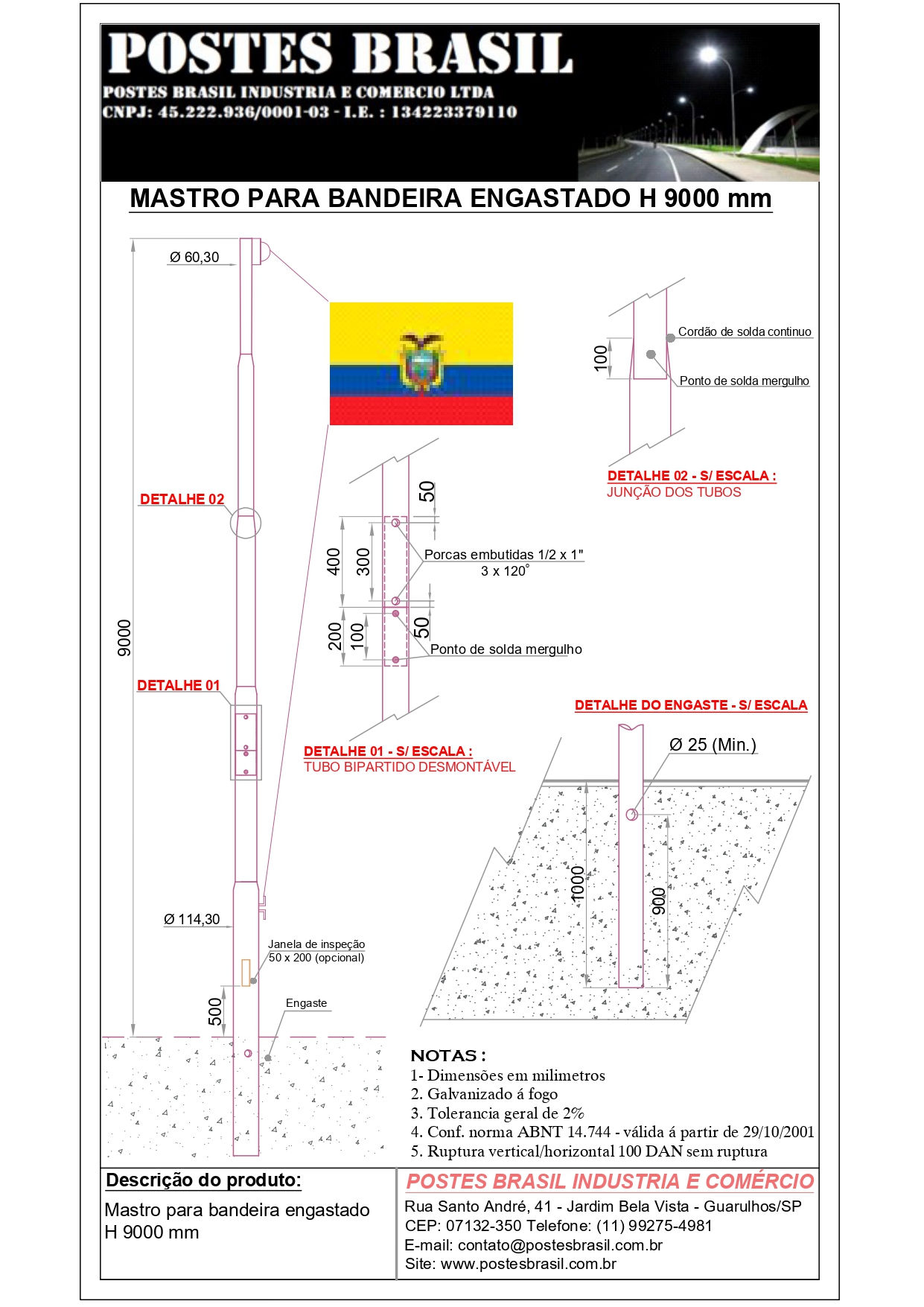 - Mastro Para Bandeira Engastado H 9000 mm
